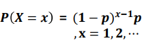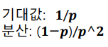 | 기하분포 | 어떤 실험에서 처음 성공이 발생하기까지 시도한 횟수 X의 분포 | ![]() |