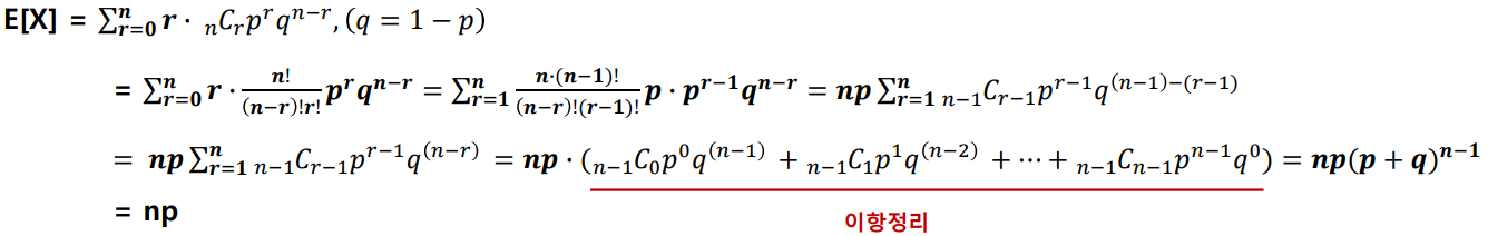 - 이항분포의 기대값: np, 분산: np(1-p)