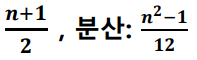 확률 변수 X가 유한개이고, 모든 확률 변수에 대하여 균일한 확률을 갖는 분포를 이산형 균등 분포 | ![]() |