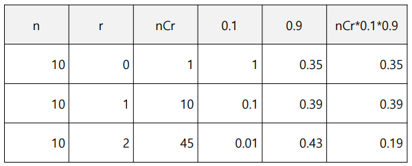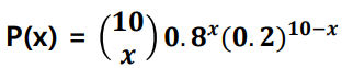 - 예시) 축구선수의 패널티킥 성공률이 80%일때, 10번의 기회에서 성공횟수와 그 확률을 구하면 아래와 같음