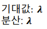 - 포아송분포 확률 변수의 기댓값과 분산은 모두 λ 임
