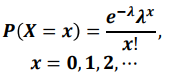 - 어느 희귀한 사건이 어떤 일정한 시간대에 특정한 사건이 발생할 확률 분포 임