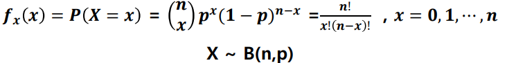- 서로 독립인 베르누이 시행을 n번 반복해서 실행 했을 때, 성공한 횟수 X의 확률 분포