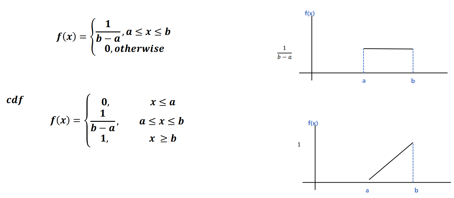 확률 변수가 X가 a와 b사이에서 아래와 같은 확률 밀도 함수(pdf)를 같음