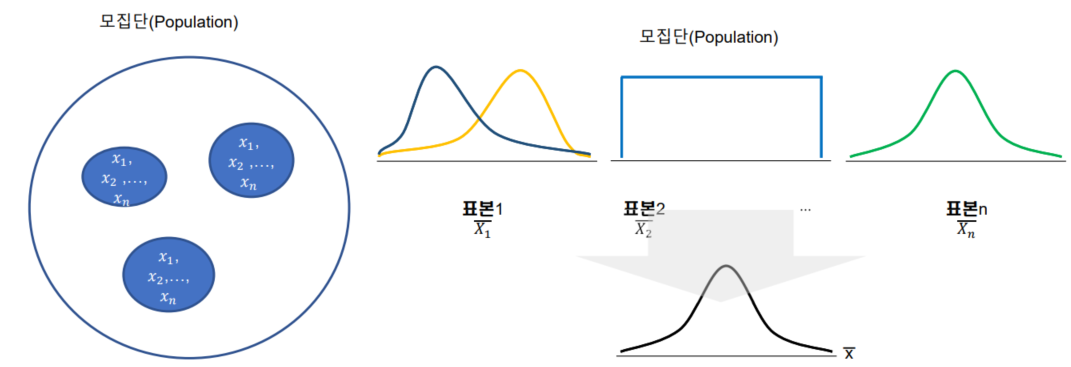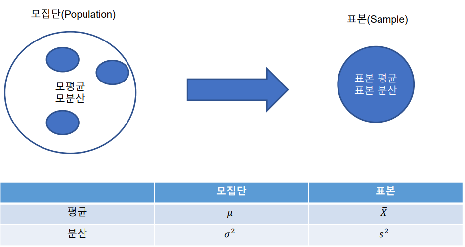 - 모집단으로 부터 표본을 추출 하는 것을 Sampling이라고 하며, 표본으로부터 그 특성을 찾아내고 모집단의