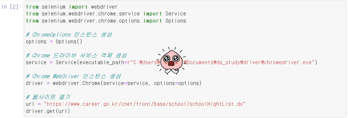 service = Service(executable_path=r"C:\Users\이름\Documents\ds_study\driver\chromedriver.exe")