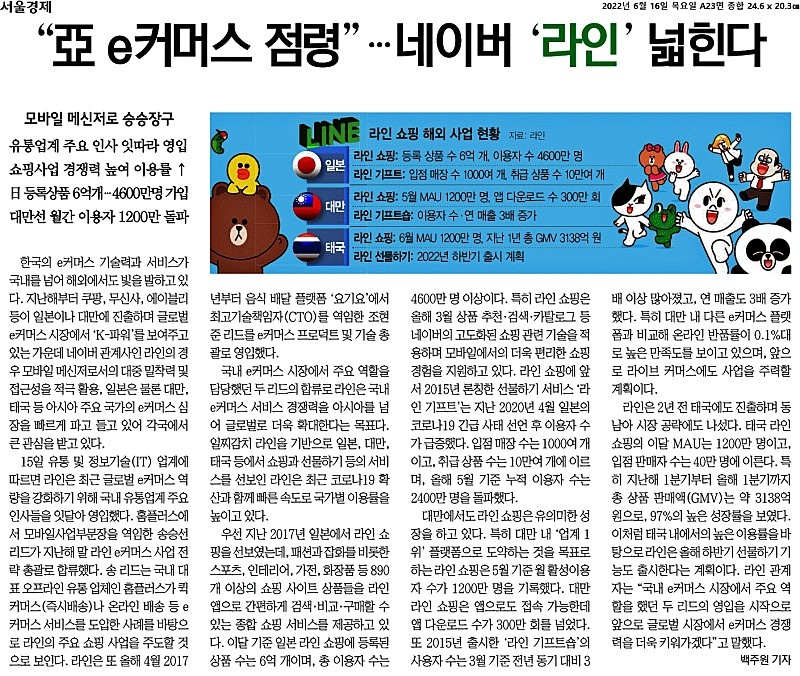 '亞 e커머스 점령'…네이버 쇼핑 DNA '라인' 넓힌다