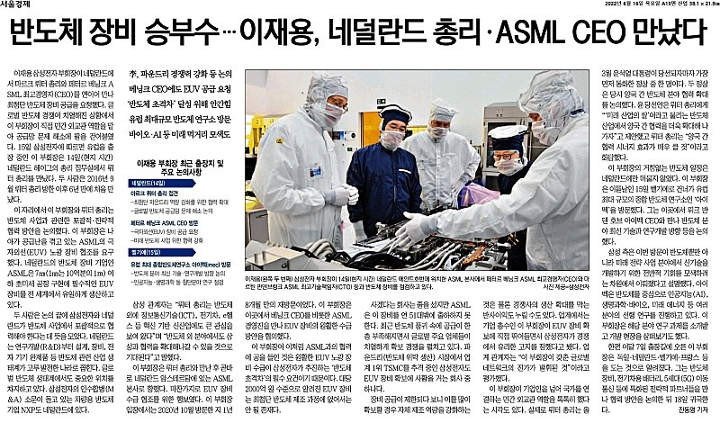"이젠 삼성이 다 쓸어가나"…이재용에 TSMC·인텔 '초긴장', 이재용, 반도체 장비 확보 총력전 네덜란드 총리 만나 협력 요청