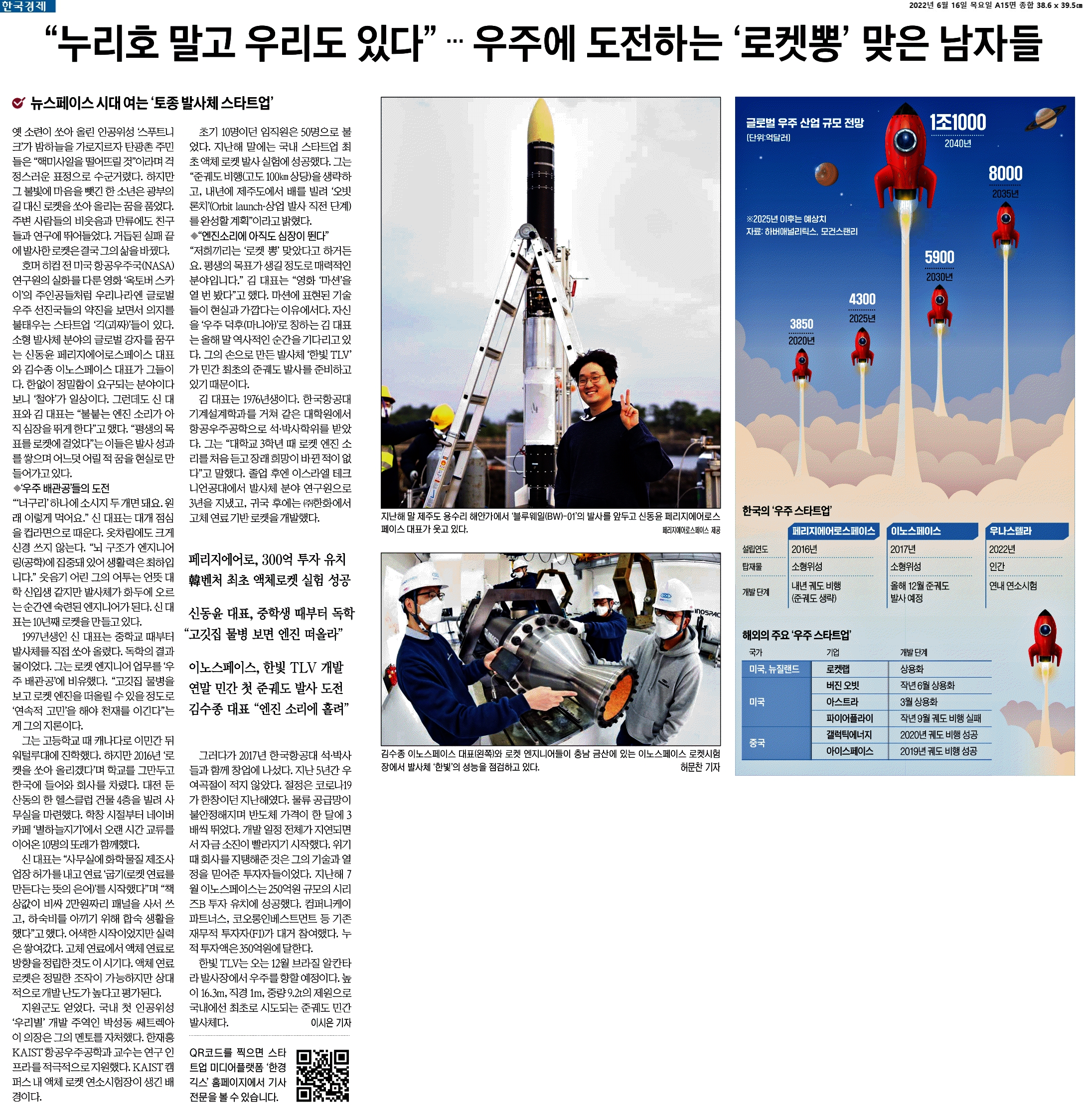 "누리호 말고 우리도 있다"…우주에 도전하는 '로켓뽕' 맞은 남자들, 뉴스페이스 시대 여는 '토종 발사체 스타트업' 페리지에어로, 300억 투자 유치 韓벤처 최초 액체로켓 실험 성공 신동윤 대표,