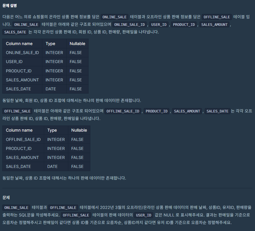 [프로그래머스] 오프라인/온라인 판매 데이터 통합하기 Lv.4 본문