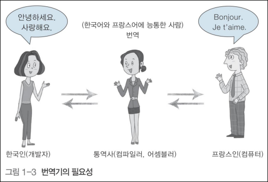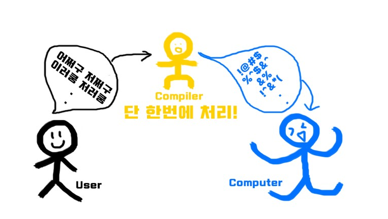 - 따라서 컴퓨터와 인간이 사용하는 언어를 기계어로 번역해주는 컴파일러가 필요하다.