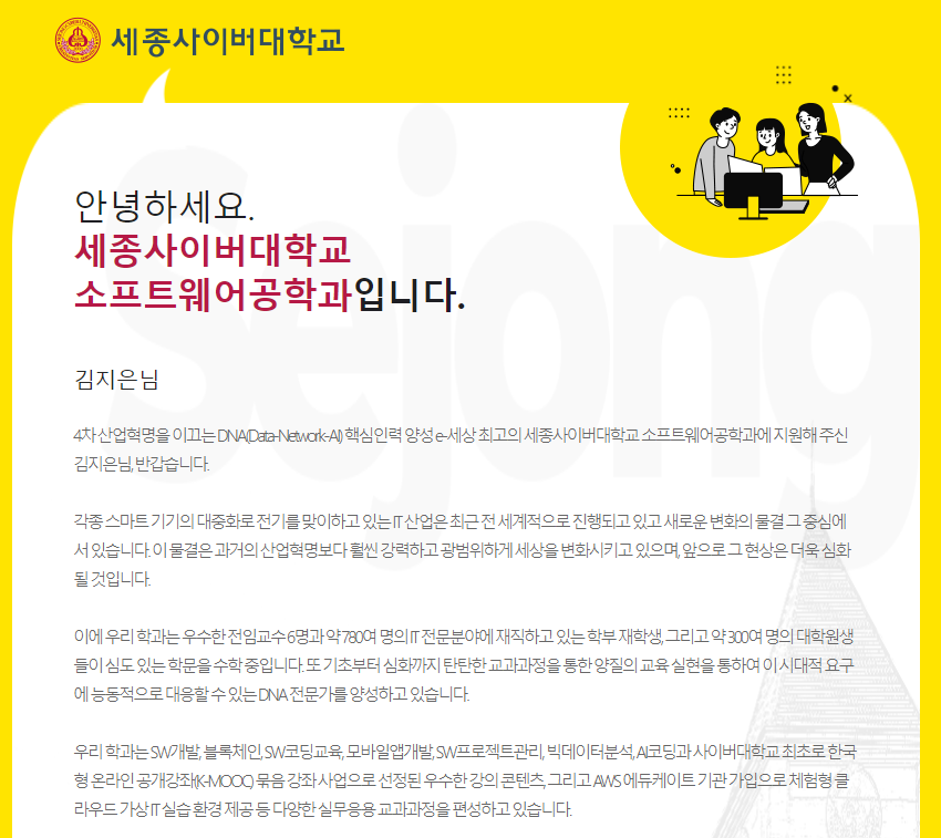 또, 세종사이버대학교 소프트웨어공학과 편입에 재도전했다.