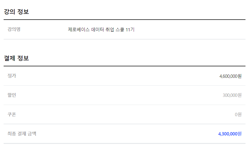 (다음 기수에 시작하면 100만원정도 더 할인을 받을 수 있으나, 빠른 시작을 원했다.)